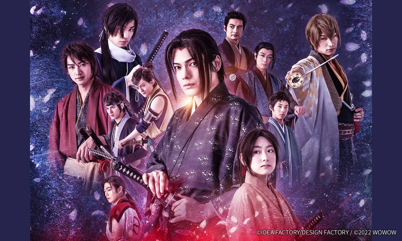 During its party event in June 2019, Otomate announced that its Hakuōki game franchise was having its first live-action drama adaptation.[2] In March 2020 it was reported that two staff members were injured in an accidental fire during production.[3] In April the following year, the "Dessert de Otomate" fan event debuted a 15-second early teaser trailer (restricted to Japan only) which revealed the series' main staff, its 10-episode run and lead cast member Tsubasa Sakiyama as Hijikata Toshizō.[4] It was revealed three months later that Wakayanagi Kotoko, whom the staff selected from over 200 applicants, would play her first heroine role as the series main character Chizuru Yukimura. Yano Masato and Kanai Sonde were also cast to play Hajime Saito and Okita Soji respectively. It was also announced that the first episode would be available to watch for free on WOWOW's official website. [5] The staff of the series later dropped a series poster later in September as well as revealing seven more cast members:Nagata Takato, Fukuyama Kohei, Tokito Yuki, Saikawa Koji, Imari Yuas, Nakabayashi Taiki and Tanaka Kotaro[6]
